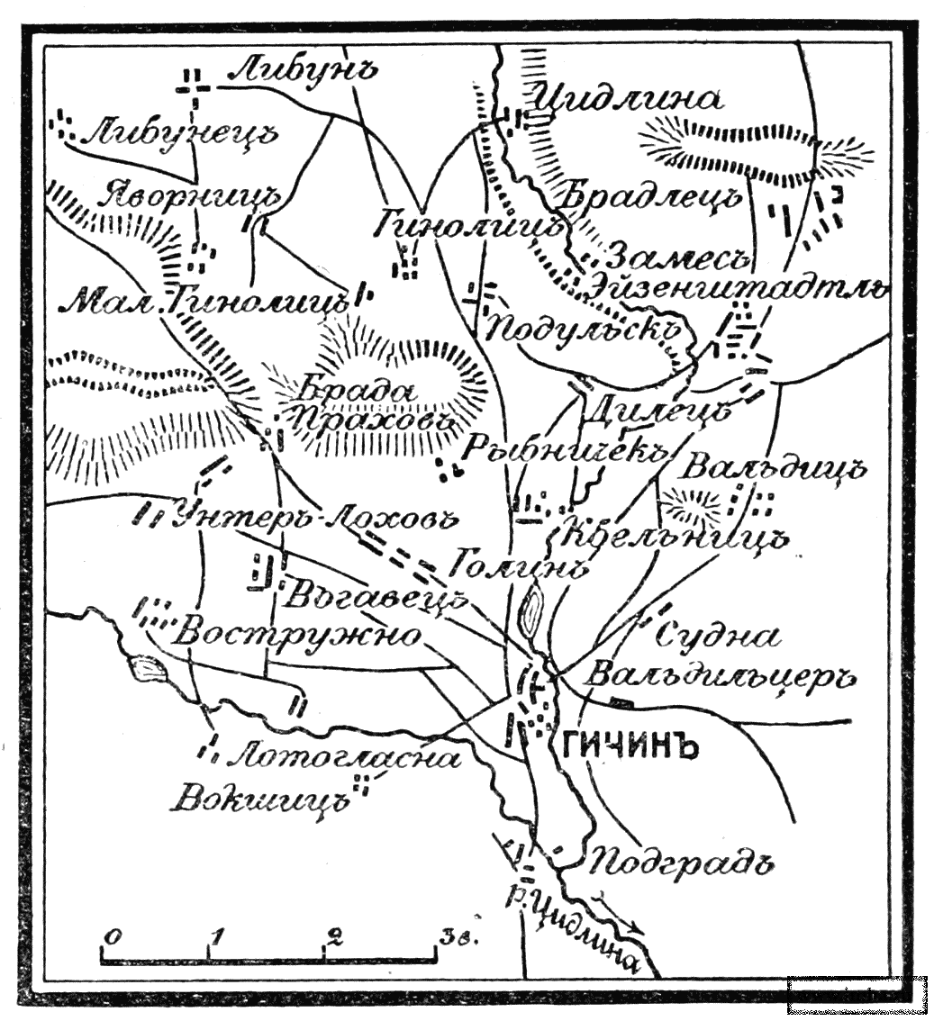 Саксонский корпус расположился под углом за левым флангом, от Подграда до Гичиновеся и Гичина.
