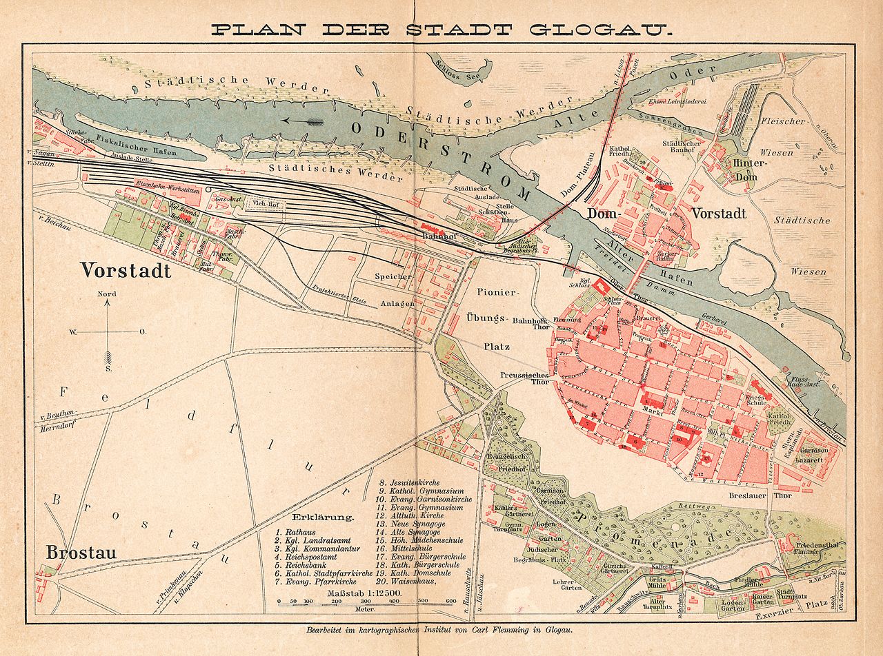 Сама крепость состояла из двух частей: главного города на берегу Одера, и части на о-ве Оберау.
