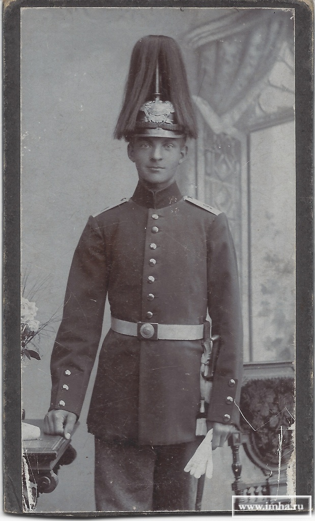 | Рядовой Кольбергского графа Гнейзенау Гренадерского полка (2-й Померанский) №9 (место дислокации - Старгард в Померании) II Армейский корпус (после 6 июня 1913 г.). |