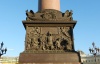 На 4-гранном пьедестале помещены 4 барельефа (5,24 х 3,1 м): на грани, обращенной к Зимнему дворцу, — две крылатые фигуры поддерживают доску с надписью: "Александру I-му Благодарная Россия», под ней основной "трофей», а с боков две фигуры. Одна из них олицетворяет р. Неман, а другая р. Висла.