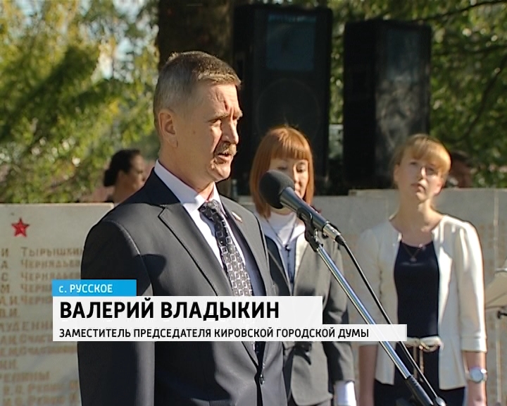 | ВАЛЕРИЙ ВЛАДЫКИН, ЗАМЕСТИТЕЛЬ ПРЕДСЕДАТЕЛЯ КИРОВСКОЙ ГОРОДСКОЙ ДУМЫ: "Я уверен, что этот день войдет в историю села и нашего города точно также, как и сорок лет назад, когда был открыт вот этот обелиск. К сожалению, время неумолимо, мы уже в следующем году будем отмечать 70 лет Победы и среди нас все меньше остается ветеранов той Великой войны». |