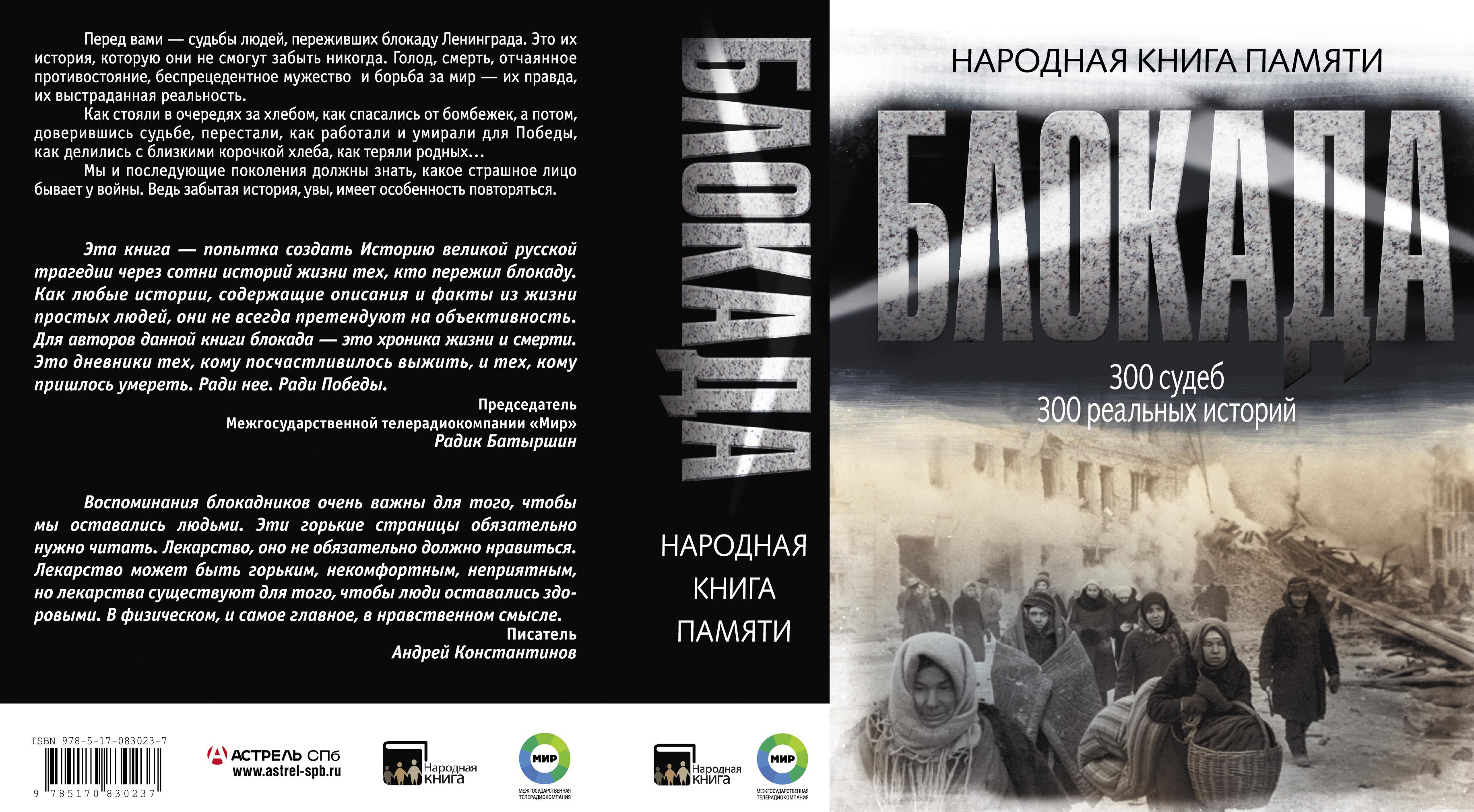 "Народная книга памяти. Блокада Ленинграда» удостоена премии Всероссийского историко-литературного конкурса "Александр Невский». Книга была создана по инициативе Межгосударственной телерадиокомпании "Мир», сотрудники которой собирали истории на протяжении 872 дней – ровно столько, сколько город находился в окружении.