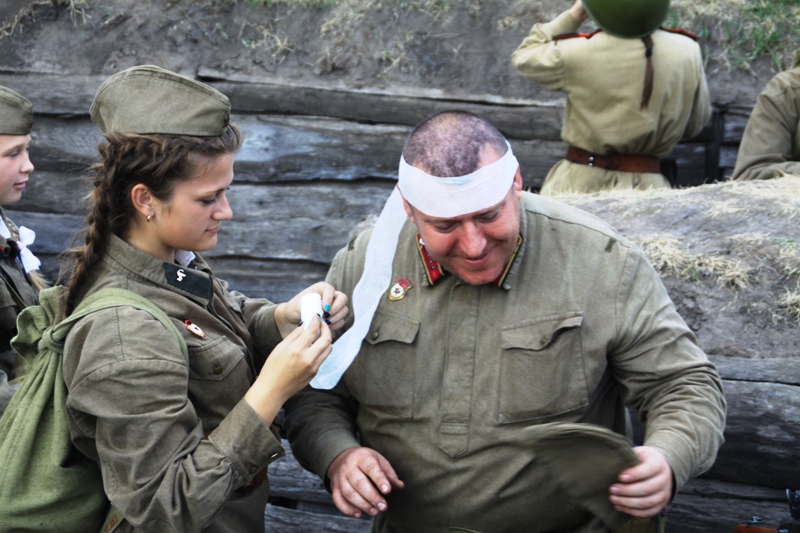 На реконструкции многочисленные зрители увидели фрагмент боя Великой Отечественной войны, когда советские воины на своих оборонительных позициях ждали немецкого контрнаступления. После небольшого затишья раздался артиллерийский огонь со стороны врага. И развернулась битва, зазвучали автоматные очереди, в воздух полетели комья земли (благодаря организованным специалистами-пиротехниками управляемым взрывам), и, наконец, после неудачной попытки фашистов атаковать, воины Красной армии праздновали победу…