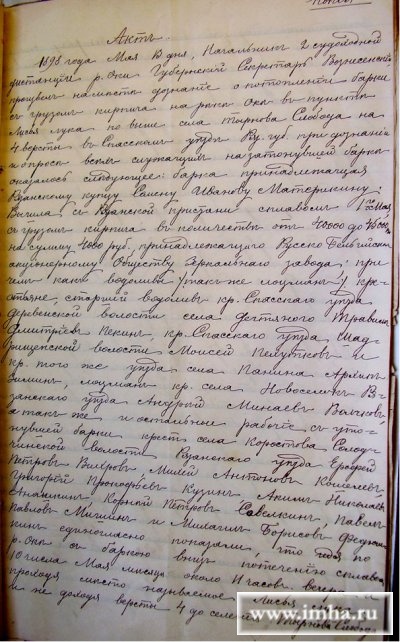 " И истец старец Макарей слался словесно Касимовского уезду на пять сел касимовского царевича,на село Мышцы, да княгини Марьи Ка/й/булины/й/(Урожд.