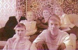 Семья В.П.Зайцева: дочь Татьяна, жена Полина Павловна, дочь Людмила и внучка Юля. На переднем плане-внуки: Денис и Дмитрий. 2000. |