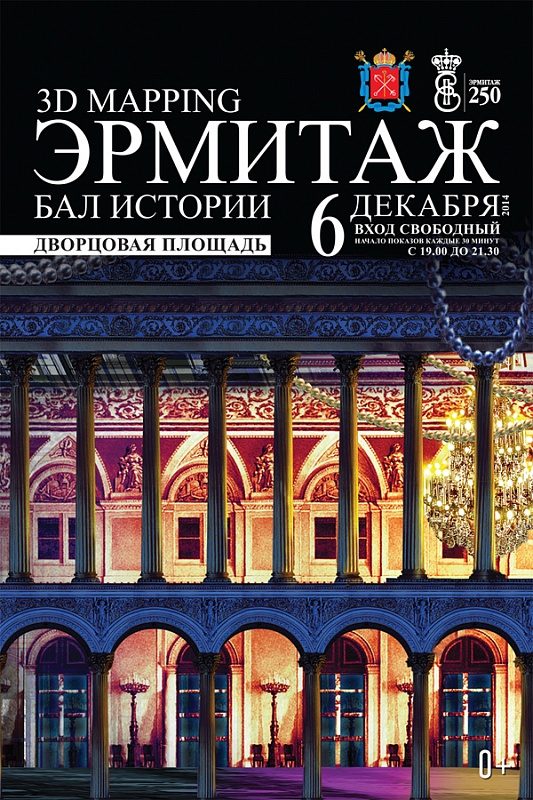 В честь празднования 250-летия Государственного Эрмитажа 6 декабря 2014 года на Дворцовой площади по инициативе Правительства Санкт-Петербурга и при организационной поддержке Комитета по культуре Санкт-Петербурга состоится уникальное видео-мэппинг представление, посвященное судьбе легендарного музея, тесно переплетенной с историей Санкт-Петербурга и России.
