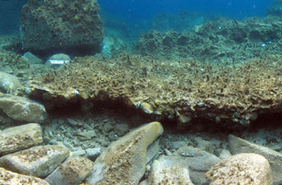 Перед мастерской открыты крупные камни, уложенные в ряд. По мнению археологов, это могут быть остатки прибрежной части поселения. Также открыты упавшая колоннада и остатки стен, которые когда-то были вытянуты вдоль берега. В какой-то момент все сооружения поселения были разрушены и погрузились на морское дно.