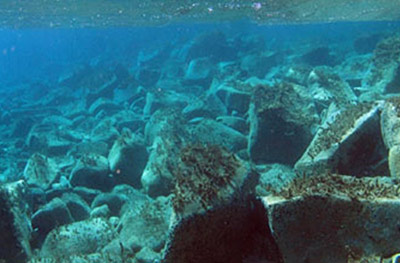 Руины, провозглашённые греческими СМИ маленькими "подводными Помпеями» обнаружены на глубине около 6 метров около северо-восточного побережья острова. Ранее эти строительные остатки считались портовыми сооружениями, однако новые изыскания, проведённые Национальным фондом греческих исследований и эфоратом подводной археологии, позволили пересмотреть старую точку зрения.