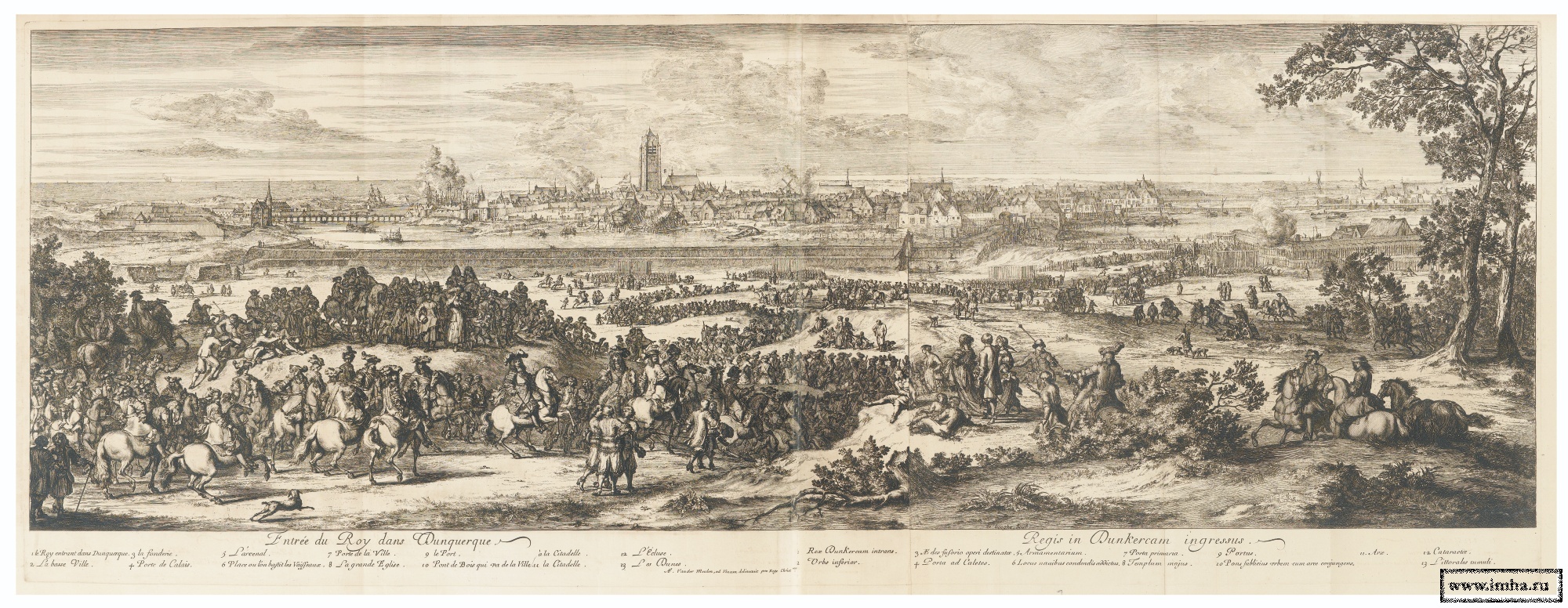 | Король Людовик XIV с армией осажадет город |