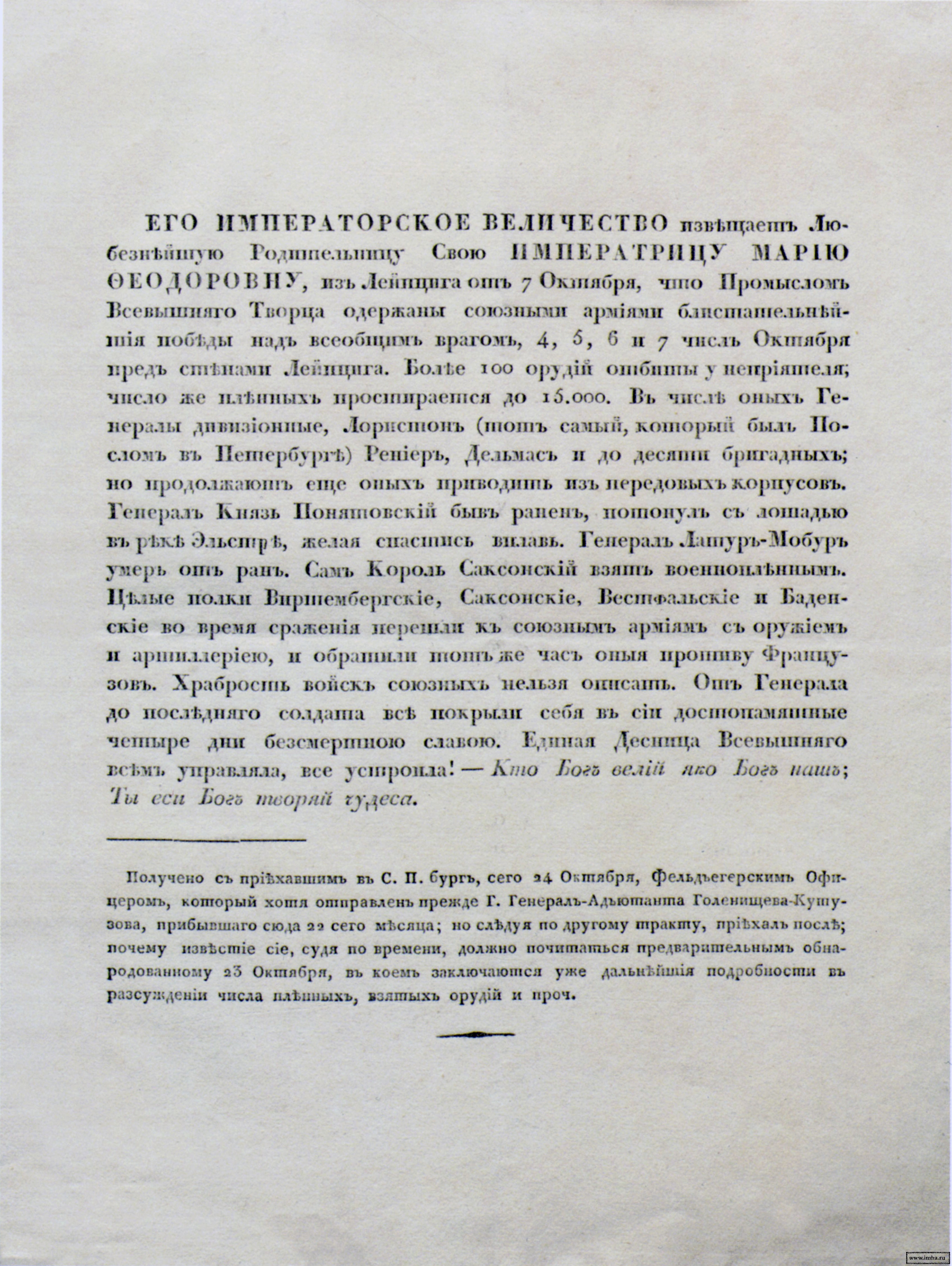 "Битва народов при Лейпциге 7/19 октября 1813 г." - потерпев поражение в Битве Наполеон был вынужден отойти за Рейн, во Францию.