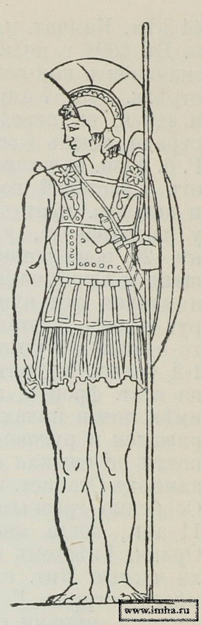 Для предохранения себя от ударов противника Гоплиты носили медные или кожаные панцири и такие же шлемы с гребнем для султана и набедренник.