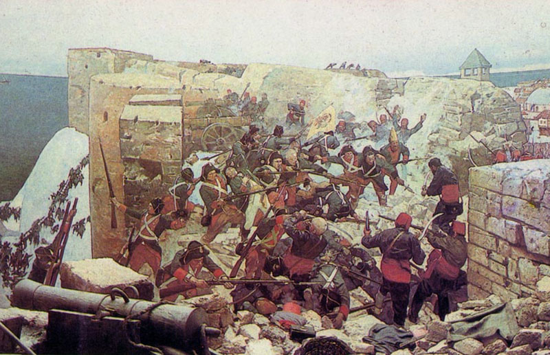 Именно этот момент изобразил художник-баталист академик Самсонов М.И. на полотне диорамы «Штурм крепости Очаков 6 декабря 1788 г.».