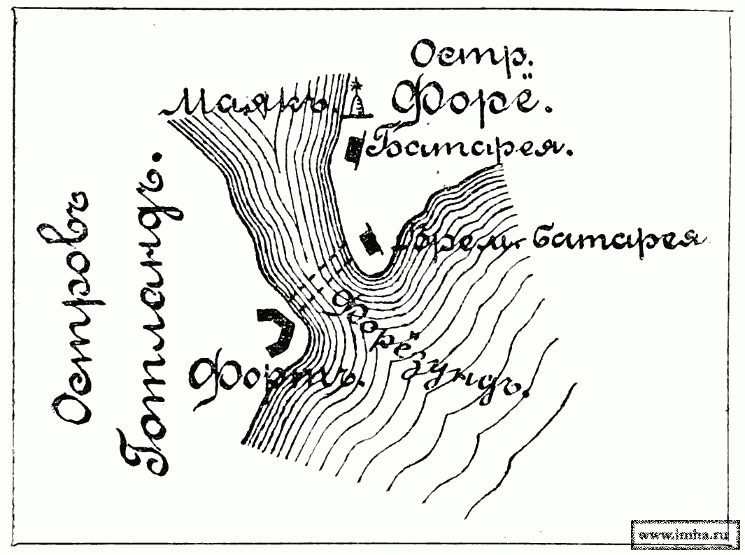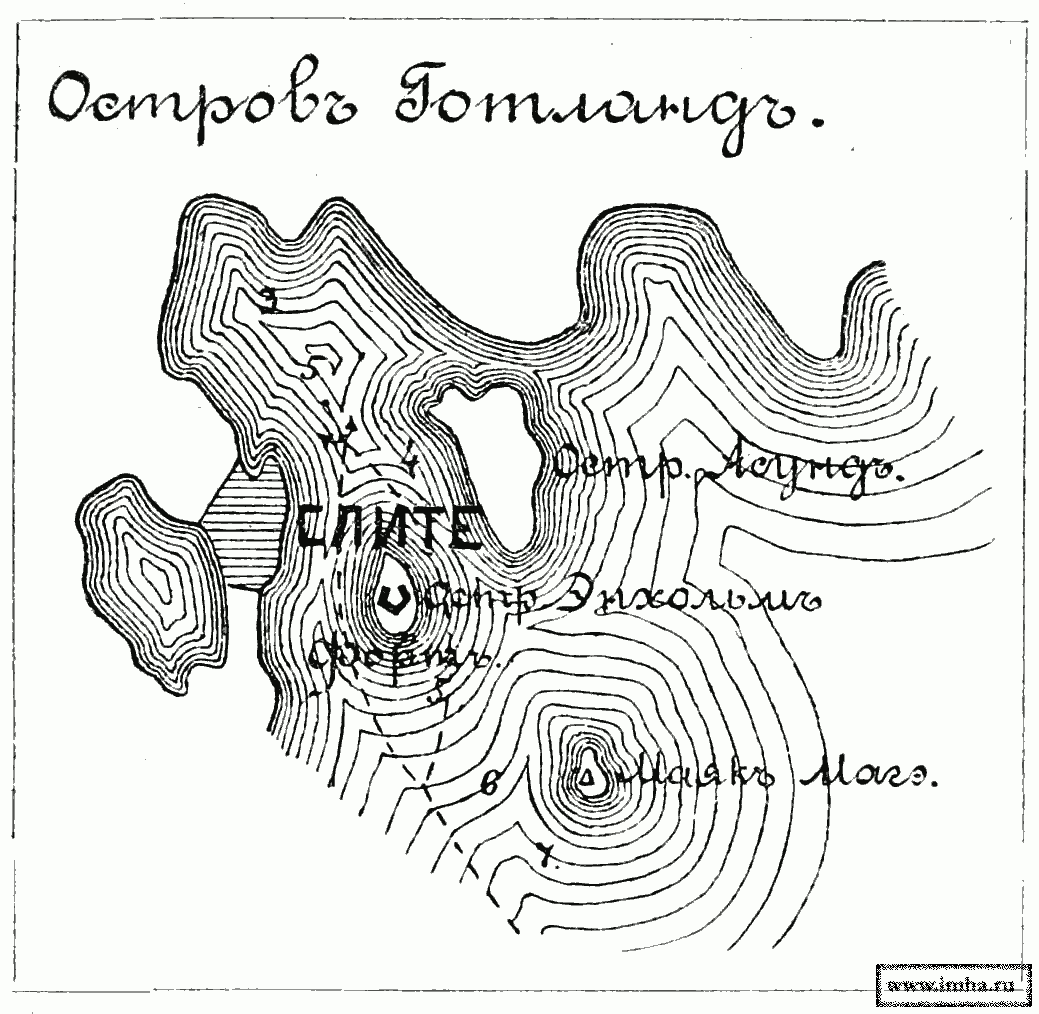 К началу XX века Готланд был укреплен в 3 пунктах: в Форезунде, Слите и Тингстеде. Форезунд — пролив между Готландом и о-вом Форе; отличная стоянка для флота; укрепления состояли из 3 батарей для скорострельных пушек среднего калибра в проливе, одного форта на самом Готланде, одной батареи на противоположном берегу пролива для обстрела минного заграждения и батарей у маяка Слите, в глубокой бухты того же имени; здесь — две казематированные батареи, защищающие подступы к этому лучшему порту Балтийского моря, расположенные на о-ве Энхольме.