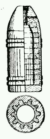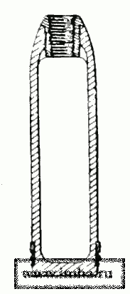 Наконец, в 70-х гг. введены медные ведущие пояса (фиг. 7) и несколько позднее один поясок и центрующее утолщение.