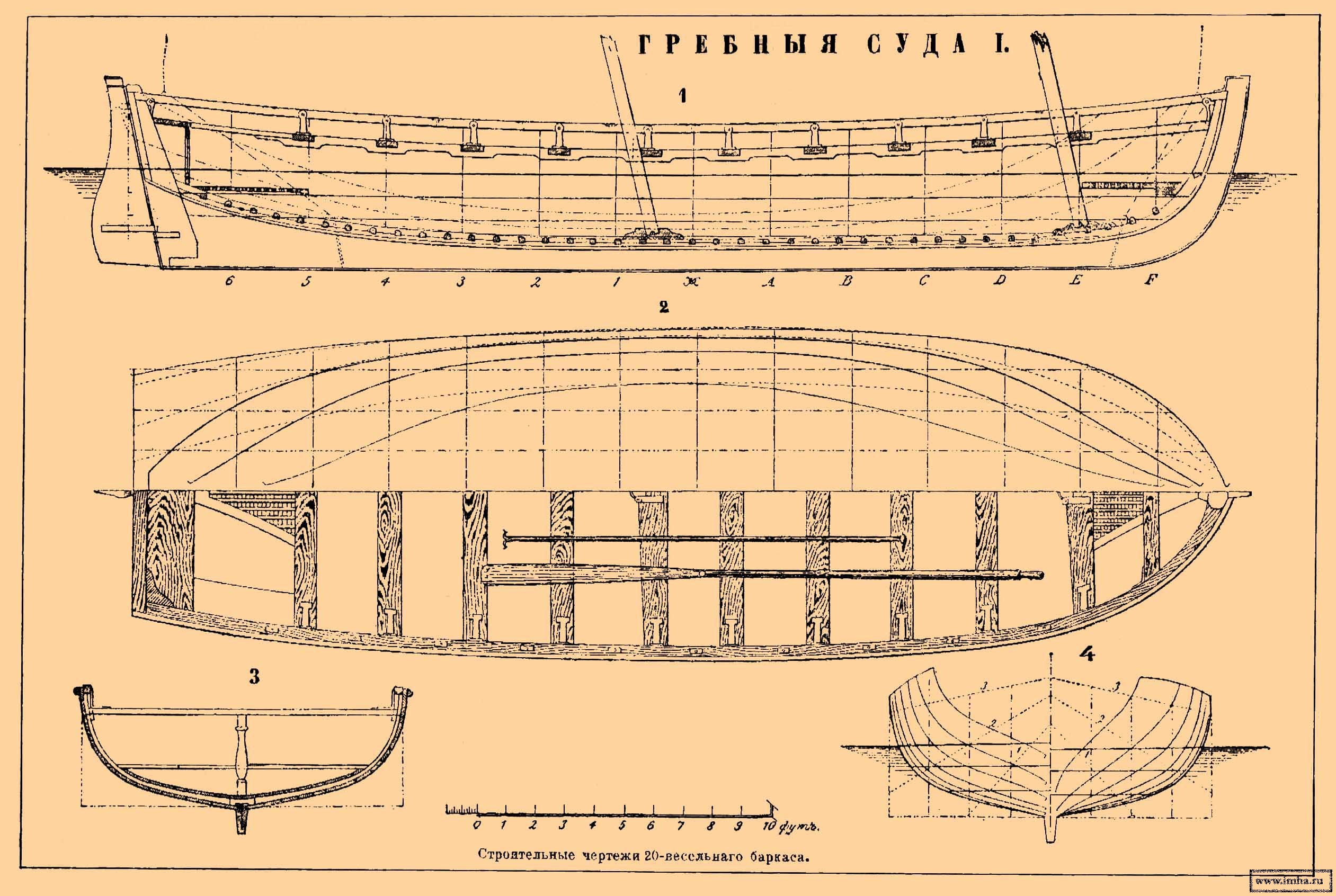 Для постройки шлюпки составляется её теоретический чертеж, представляющий горизонтальные (ватерлинии), вертикально-поперечные (шпангоуты) и вертикально-продольные (батоксы) сечения шлюпки, и практические чертежи расположения частей и их крепления.