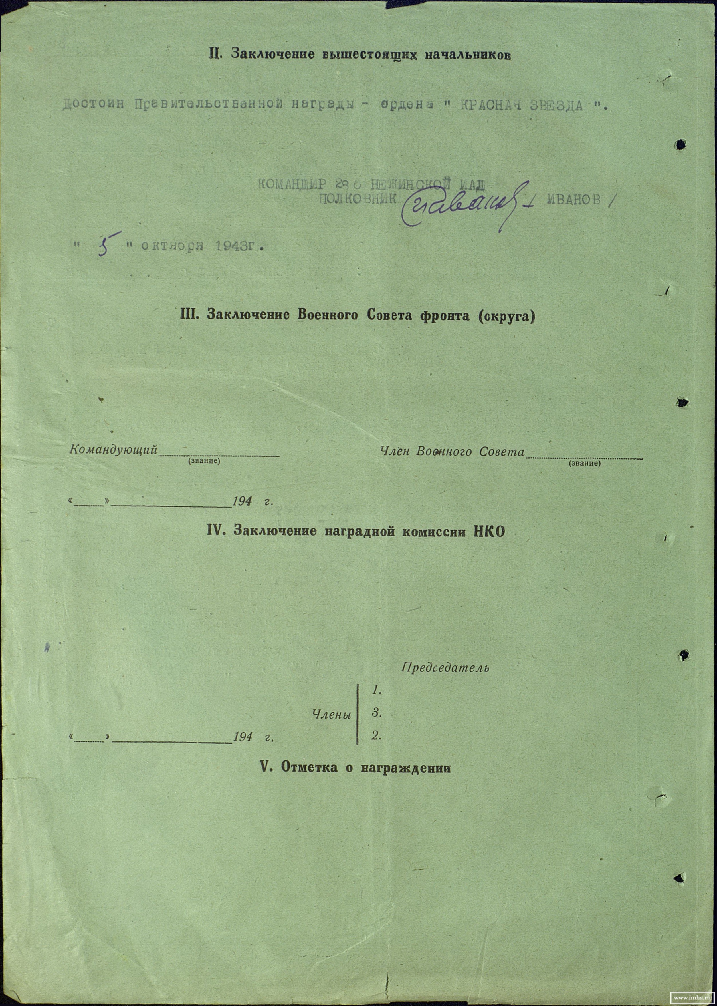 1.Приказ подразделения №: 16/н от: 11.10.1943.Издан: 286 иад. Архив: ЦАМО,фонд: 33,опись: 686044,ед.хранения: 336,№ записи: 46247897.