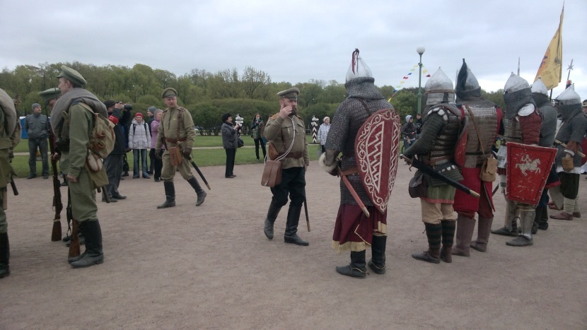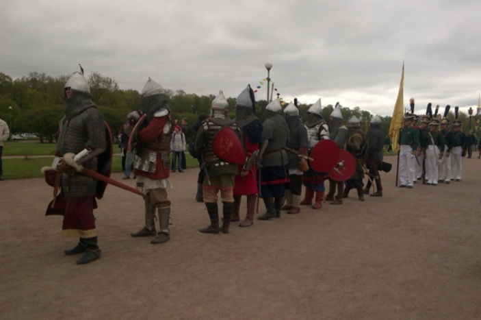 Казаки, гренадеры петровской эпохи, солдаты войны 1812 года и участники Первой мировой войны – сегодня Марсово поле в Петербурге, где перемешались несколько исторических эпох, превратилось в настоящую машину времени. Под бой барабанов и сопровождение духового оркестра маршем прошли более 100 реконструкторов, переодетых в костюмы воинов разных времен.