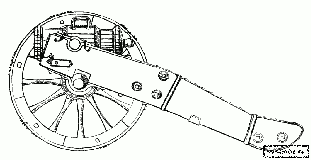 Им приняты для полевой артиллерии 12 и 8-фн. пушки и 8-дм. короткие гаубицы (фиг. 1), а для полковой — 4-фн. пушки.