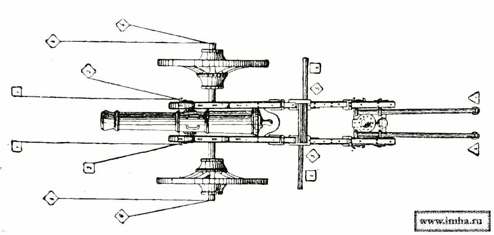 | Фиг. 5. Береговой лафет с поворотною рамою. |