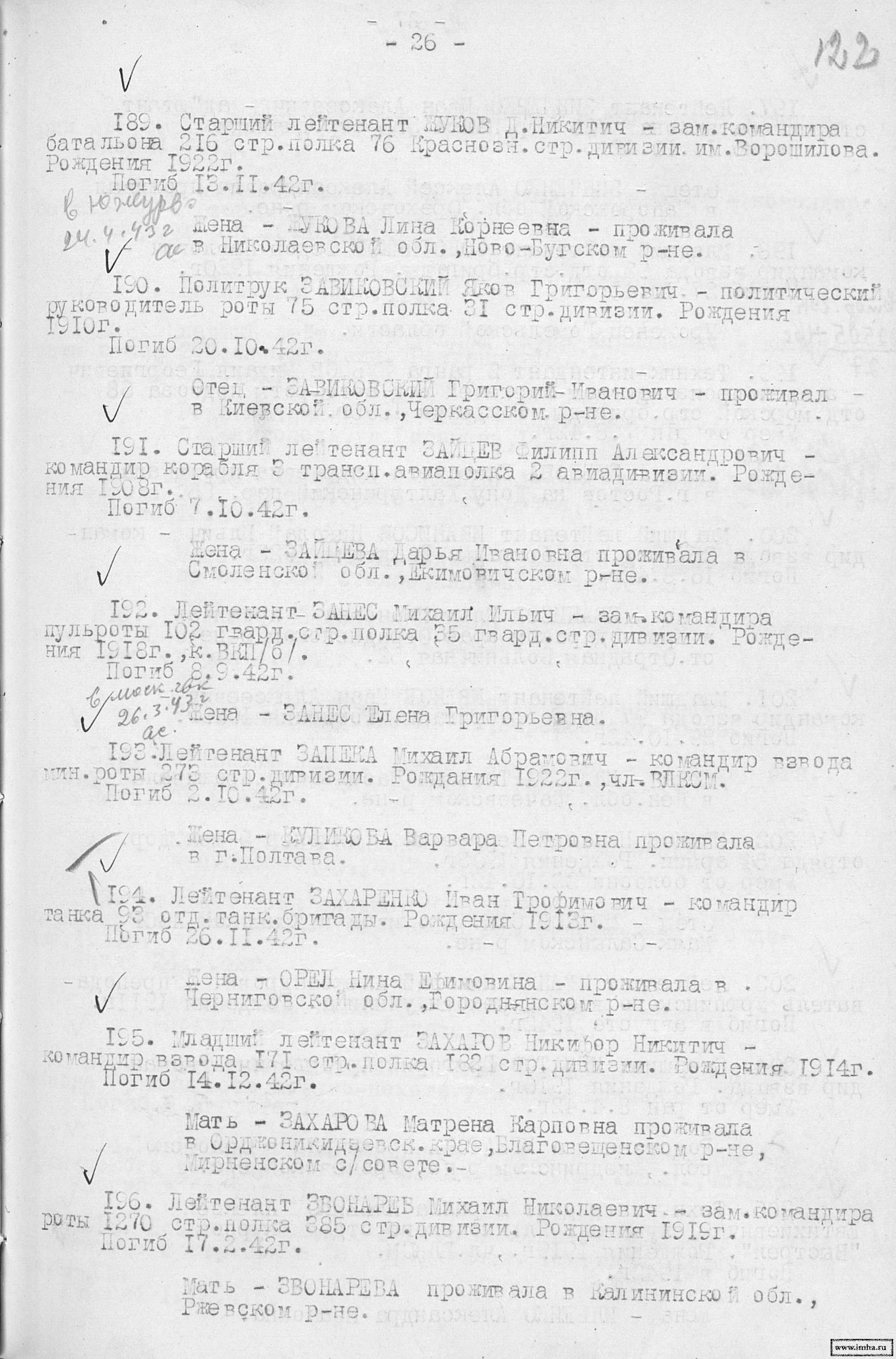 4.Старший бортмеханик самолета Ли-2, 3-го транспортного авиаполка 2-й авиационной дивизии особого назначения, старший техник-лейтенант Андрей Дмитриевич Мальцев. Родился в 1906 г. в д. Теряево Покровского района Орловской области. ЦАМО, ф. 58, оп. 818883, д. 2044, л. 4. ЦАМО, ф. 56, оп. 12220, д. 83, л. 287.