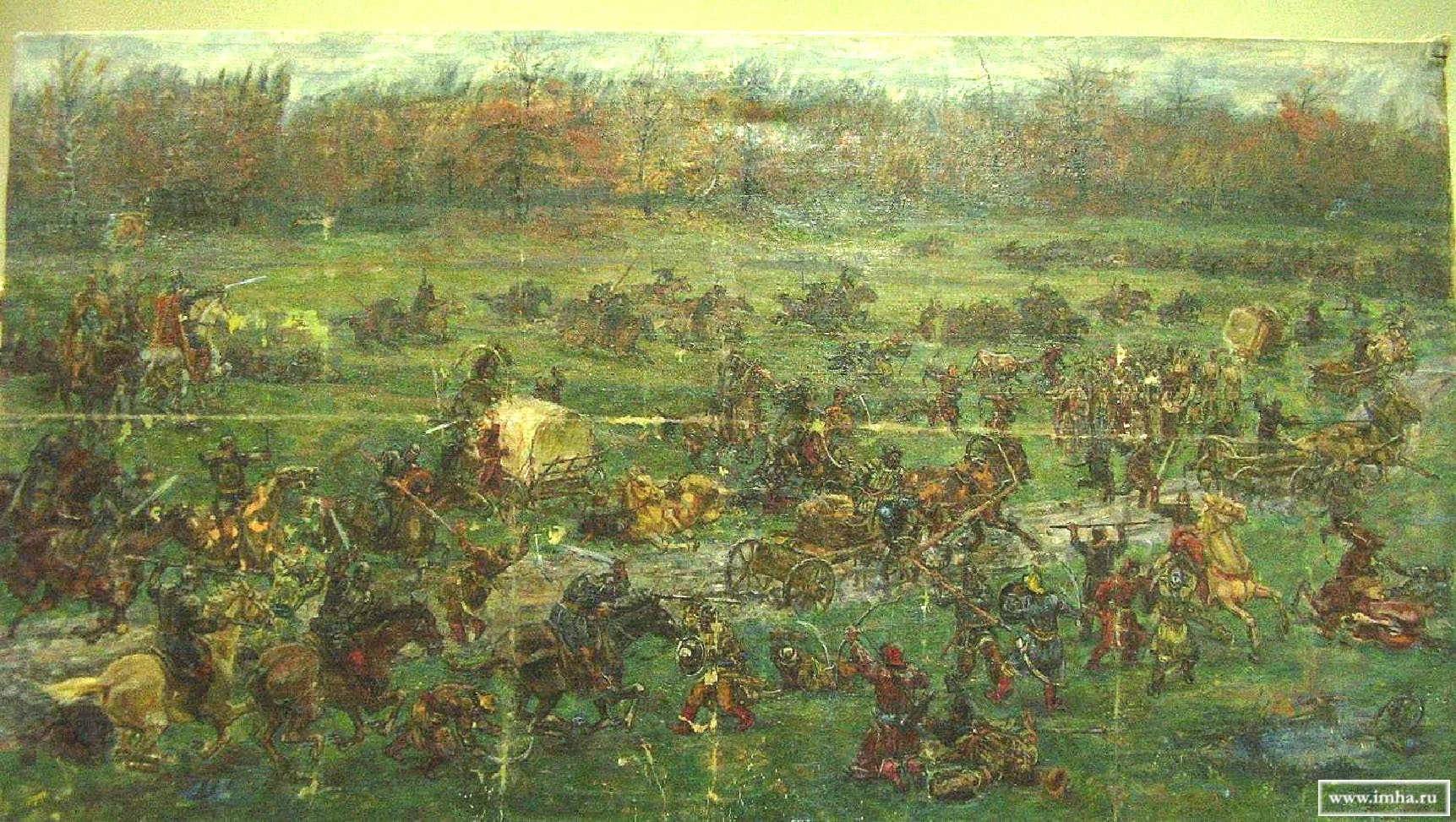"Битва у Шишевского леса.1365.» Худ. Зайцев Николай Егорович (род.1942 г.) Московский Худ.фонд. 1988 г. Х.,м. 87 Х 178. |