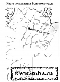 - Воинский уезд занимает территорию от истоков и до устья между речками Непложа ( на западе) и Крутица с Ибредой (на востоке) – до реки Оки.