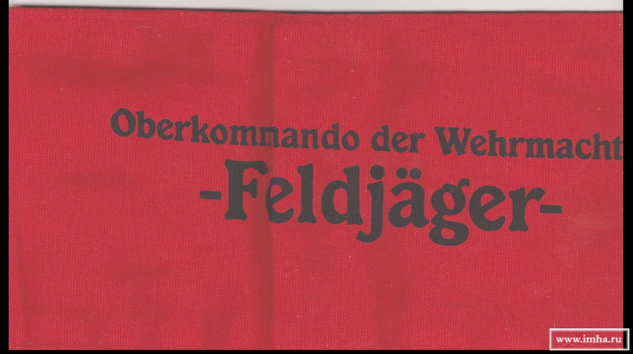 Кроме нагрудных блях-горжетов на цепи, фельдъегеря из числа чинов германского вермахта и Ваффен-СС носили (хотя и не всегда) на левом рукаве (обычно - ниже локтевого сгиба) красную повязку с надписью черным латинским шрифтом: