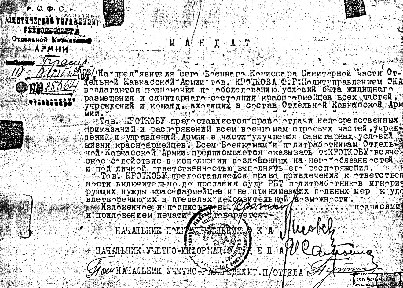 - ЦАМО РФ, личное дело Ф.Г. Кроткова, инвентарный номер 0479004.