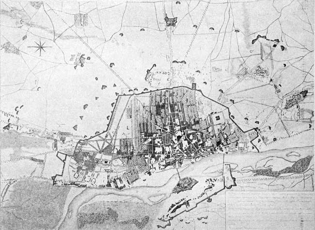 Роль 3-ей оборонительной линии исполнял сплошной городской вал, возведенный значительно раньше с таможенными целями и теперь только усиленный реданами и флешами.