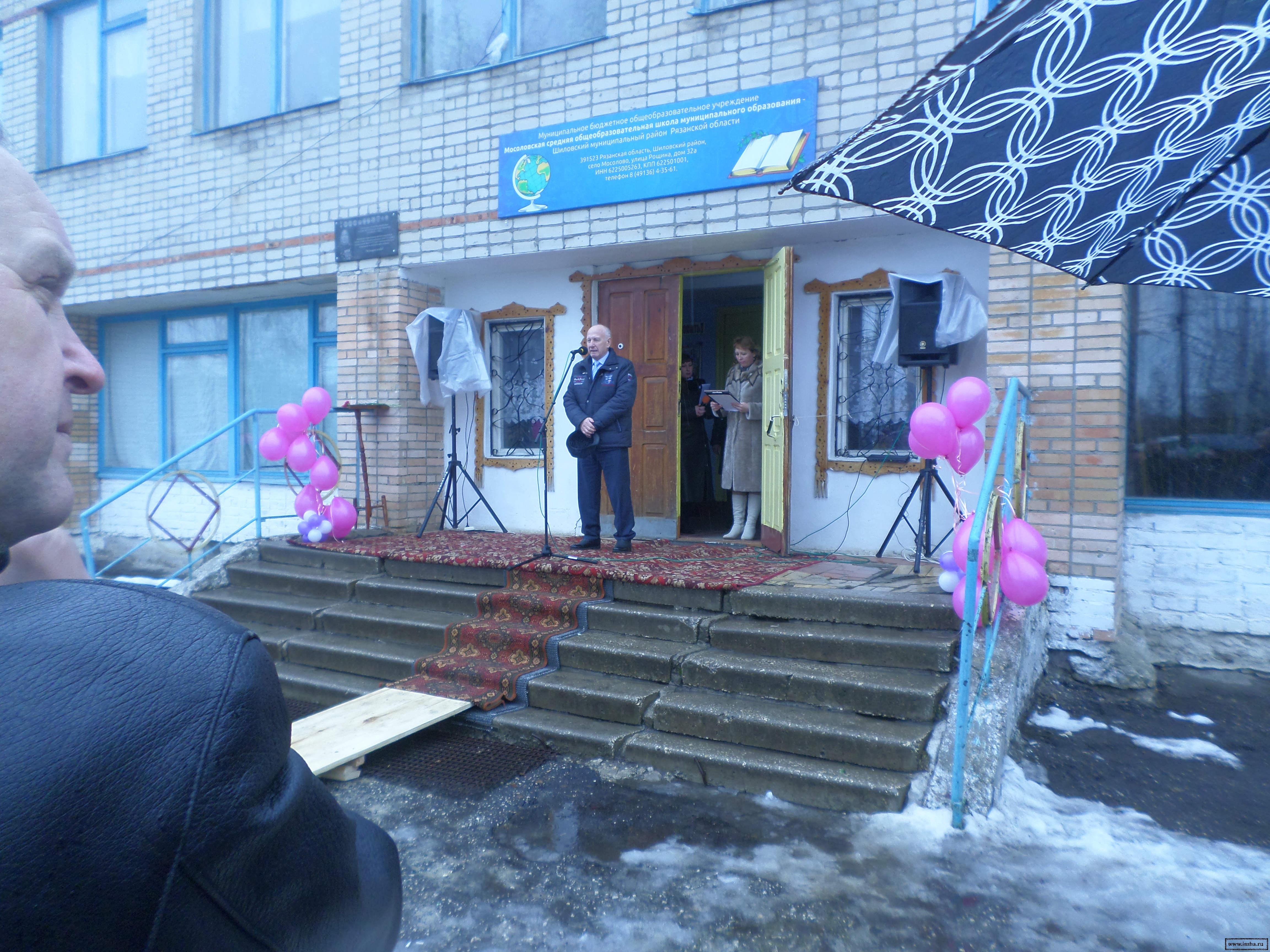 4 марта 2016 года. Глава Шиловского района Фомин Василий Михайлович,Герой РФ, депутат Госдумы,гвардии полковник ВДВ Красов Андрей Леонидович и Сафонкин Сергей Васильевич,руководитель Управления Роспотребнадзора, Главный государственный санитарный врач по Рязанской области открыли на здании Мосоловской средней общеобразовательной школы – мемориальную плиту в честь 120-летия Кроткова Федора Григорьевича. |