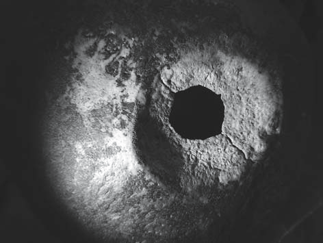 Второй этап трепанации, судя по выявленным следам, осуществлялся двумя способами. В первом случае прорезание кости производилось тем же инструментом, что и удаление поверхностного слоя, и аналогичными движениями. Такого рода действия прослежены на мужском черепе из кург. 3 курганной группы Кызыл-Джар V. Второй способ зафиксирован на женском черепе из кург. 2 курганной группы Кызыл-Джар IV и мужском из кург. 3 могильника Бике III. Судя по следам трепанации, можно предполагать, что проникновение в полость черепа производилось не режущими, как при первом способе, а прямыми параллельными длинной оси инструмента, «колющими» движениями. Следствием такого рода действий стали «ступенчатые» края образовавшегося отверстия (рис. 6). Вероятно, при таком финальном прободении кости черепа «колющие» движения были нерегулярными. Можно предположить, что как только оперативные действия давали возможность подцепить удаляемый фрагмент кости, она отделялась от черепа обычным режущим движением. Наблюдаемые на черепе из кург. 3 могильника Бике III следы более частых, но не столь глубоких, как на черепе из Кызыл-Джара IV, проникающих внутрь «колющих» движений (рис. 6, б) свидетельствуют о том, что в данном случае хирург действовал осторожнее, с большей точностью определяя место прободения черепа и конфигурацию отверстия. Можно отметить определенную уверенность в оперативных движениях хирургов прошлого. Следов непреднамеренных, но вполне естественных при резании кости сколов не зафиксировано.
