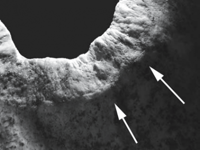 На основе опыта экспериментальных исследований в археологии Северной и Центральной Азии [Волков, 2013] на базе лаборатории ИАЭТ СО РАН было проведено трасологическое изучение следов на поверхности трепанированных черепов, что позволило определить характер действий хирургов в проведенных ими операциях, сделать некоторые предположения о конструкции использованного ими инструментария. Обследование производилось с помощью бинокулярных микроскопов, наблюдаемые особенности структуры поверхности кости при ее операционной и послеоперационной деформации фиксировались специальной фотоаппаратурой макросъемки (рис. 1).