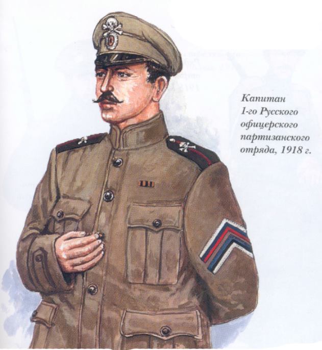 В их символике – на погонах, фуражках, папахах, жетонах и нарукавных щитках, наградах, знаменах, перстнях и нагрудных знаках корниловцев, анненковцев, дроздовцев, бойцов Сибирской полковника Пепеляева штурмовой бригады и Западной Добровольческой Армии генерала князя Авалова (Бермондта), отрядов ставшего атаманом бывшего пунинца С. Н. Булак-Балаховича, донских казаков-гундоровцев, 1-го Ревельского Русского офицерского партизанского отряда в составе Северного корпуса (впоследствии - Северо-Западной Армии) генерала Юденича (см. иллюстрацию в заголовке настоящей миниатюры), Железной бригады Чехословацкого Корпуса, ударников генерала Радолы Гайды и полковника Пепеляева штурмовой бригады Сибирской имени, а также многих других непременно присутствовала «мертвая голова» - как символ смерти и воскресения, причем та же самая идея нередко выражалась и чёрно-белой цветовой «схимнической» гаммой военной формы белогвардейских частей.