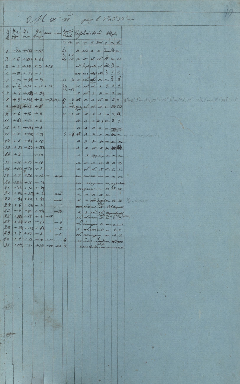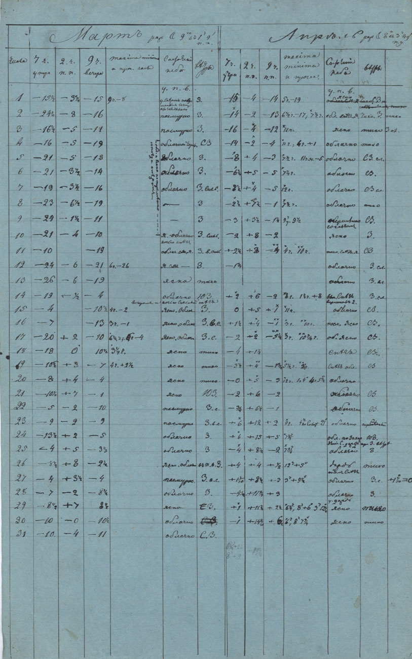 Записи метеорологических наблюдений за март-май 1832 г.