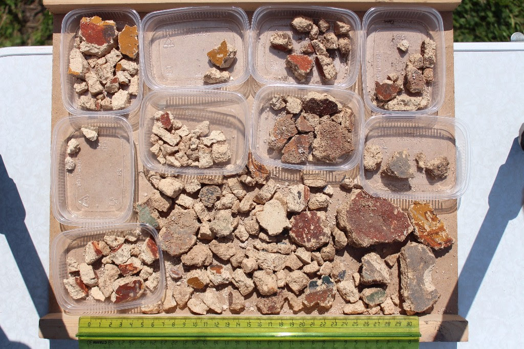 В процессе работ обнаружены сотни фрагментов древней фресковой росписи, в том числе несколько фрагментов с изображениями частей ликов, два участка древней фрески обнаружены на самой южной стене храма. Среди находок археологов и предметы быта и ремесла, попавшие на площадку храма из подстилающих его слоев.