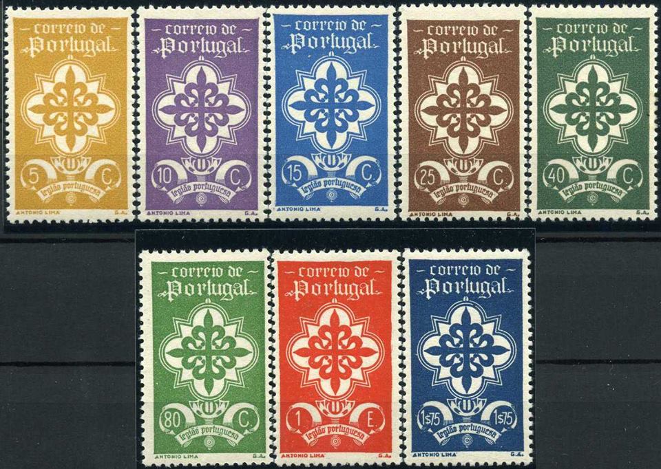 10 ноября 1936 года все военнослужащие и государственные чиновники Португалии были приведены к присяге на верность Новому Государству и дали торжественную клятву бороться против коммунизма. Спустя неделю была начата запись в добровольное ополчение – "Португальский Легион" (не путать с упоминавшимся выше Легионом "Вириатуш"). Эмблемой "Португальского легиона" (порт.: Legiao Portuguesa) первоначально служил красный лапчатый крест португальского Ордена Христа (прямого преемника Ордена тамплиеров), под знаком которого португальские мореплаватели закладывали основы заморской Лузитанской империи, простиравшейся некогда от Африки до Бразилии, Индии и Китая. Впоследствии эмблемой "Португальского Легиона" (который некоторые авторы, по недоразумению, величают "Португальским Легионом СС", якобы воевавшим на стороне гитлеровской Германии против советских войск на Восточном фронте, что абсолютно не соответствует действительности, хотя некоторое количество португальских волонтеров в индивидуальном порядке служило в рядах испанской добровольческой "Синей дивизии" германского вермахта) стал зеленый лилиевидный крест средневекового португальского духовно-рыцарского Ордена Эворы (Авишского Ордена Святого Бенедикта, или Сан-Бенто ди Авиш). Этот же зеленый лилиевидный крест был изображен на белом, обрамленном зеленой каймой знамени "Португальского Легиона". Крест "Португальского Легиона", вписанный в "Богородичную звезду" и наложенный на обнаженный меч острием вверх, изображен на серии португальских почтовых марок, помещенной нами в качестве иллюстрации, в заголовке настоящей исторической миниатюры.