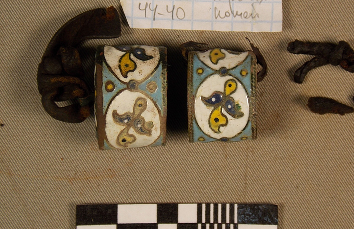| Обойма и навершие рукояти русского ножа с эмалевыми аппликациями |
