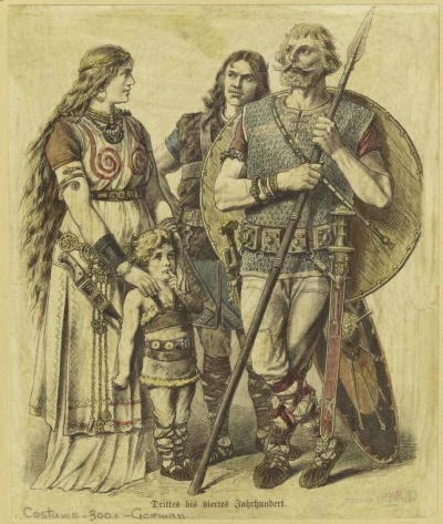 Когда в 350 г. п.Р.Х. состоявший на римской военной службе и дослужившийся до высоких чинов франк (германец) Магненций, провозгласив себя императором, восстал против римского императора Константа (сына первого христианского императора Константина Великого), его, по причине кровного родства (как сообщает Юлиан – будущий император Юлиан Отступник, тщетно пытавшийся возродить в Римской империи язычество) поддержали не только франки, но и саксы, да и другие германские племена. Юлиан дважды подчеркивает в своей первой речи - «Похвала самодержцу Констанцию (греч. Enkomion eis ton autokratora Konstantion») - , что решающим мотивом для поддержки, оказанной всеми этими германцами Магненцию, было племенное родство. Когда в 399 г. п.Р.Х. восточно-римский военачальник Трибигильд (принадлежавший к германскому племени остготов), взбунтовал подчиненные ему германские войска восточно-римской армии против императора восточной части Римской империи Аркадия, посылаемые против него германские отряды армии восточных римлян (если верить главе 15 книги V «Новой истории» восточно-римского автора Зосима) один за другим переходили на сторону Трибигильда. В 408 г. п.Р.Х., после убийства римского военного магистра (главнокомандующего римской армией) Флавия Стилихона (сына германца-вандала и римлянки) по проискам враждебной германцам «национально-римской» партии при дворе владыки западной части Римской империи Гонория, многие тысячи германских воинов (если верить главе 35 той же книги V той же «Новой истории» того же Зосима) оставили западно-римскую службу, перейдя на сторону враждебного западным римлянам царя вестготов Алариха. Спустя год, в 409 г. п.Р.Х. германские солдаты императора-узурпатора Константина III, которым было приказано защищать пиренейские перевалы от натиска германского племени вандалов, стремившегося прорваться в римскую Испанию, перешли на сторону последних. Когда италийские остготы в 552 г. п.Р.Х., в завершающей фазе их борьбы со стремящимися отнять у них Италию восточными римлянами императора Юстиниана I Великого, обратились за поддержкой к франкскому царю Теодибальду, они, если верить восточно-римскому историку Агафию Миринейскому (536-582 п. Р.Х.), подчеркивали, что умоляют франков оказать поддержку родственному и дружественному народу, который в противном случае стоит перед угрозой окончательной гибели. (Агафий. О царствовании Юстиниана. I, 5).