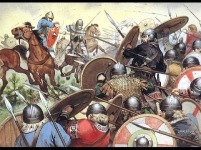 Между тем, главные силы царя гуннских «видимых бесов» двинулись вверх по течению Данубия (Данувия, Дануба или Истра - современного Дуная) в западном направлении. В состав этой «Великой армии» Аттилы, кроме гуннского ядра, входили все его германские вассалы и союзники во главе со своими царями. Давно уже участвовавшими, в качестве военных советников и консультантов, в заседаниях «Круглого стола» царя Аттилы, и вот уже три года как не ходившими в дальние походы «за зипунами». Самым сильным военным контингентом германских союзников «Бича Божия» были гепиды под предводительством Ардариха, «вернейшего из верных». Аттила мог так слепо полагаться на своих гепидов, что даже позволял им идти в походах самостоятельно, отдельно от основной массы войск. И даже самостоятельно участвовать в боях, как в авангарде, так и в арьергарде (что порой приводило в смущение историков, в чем мы с вами скоро убедимся, уважаемый читатель). Кстати, в «Гетике» гепиды представлены частью готов, переправившейся с «острова Скандзы» (современной Скандинавии) на прибалтийскую «большую землю» на борту второго корабля флотилии переселенцев (состоявшей, по легенде всего из трех кораблей, на одном из которых плыли готы, на втором - гепиды, на третьем - вандалы). Явно не симпатизирующий гепидам Иордан считает их ленивыми и неповоротливыми. Что, кстати, не соответствует его же описанию гепидов как отменных воинов. Второй по силе контингент союзных войск «Великой Армии» Аттилы составляли германцы-остготы под предводительством своего царя Валамера (Валамира). Третий – германцы-скиры во главе с гуннским князем Эдеконом (Идикой) - отцом упоминавшегося выше Одоакра. Четвертый – германцы - руги (ругии). Пятый – германцы-герулы (эрулы, элуры, эрилы). Шестой – германцы-квады. Седьмой (шедший крайним на правом фланге гуннской армии) – германцы-туринги. Чуть позднее к войску «Бича Божия» присоединились военные контингенты германских племен рипуарских (восточных) франков. Их претендент на престол стремился поддержать Аттилу участием в войне на его стороне. А вот уцелевшие от двух последовательных разгромов гуннами германцы-бургунды, решив закрыть глаза на то, что в первый раз были разгромлены не только одними гуннами, но совместными усилиями гуннов и западных римлян, и лишь во второй раз – только гуннами, выступили, как и осевшие в Галлии вестготы, на стороне западных римлян Аэция против «Великой армии» грозного гуннского царя.