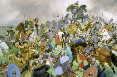 Короче говоря, опять «темна вода во облацех…» Поскольку Иордан, видимо, тоже не имел надежных, достоверных сведений о ходе битвы (хотя писал свою «Гетику» спустя лишь несколько десятилетий после «битвы народов»), он пытается заполнить пробелы в повествовании воинственными речами, вложенными им (впрочем, подобно многим авторам до и после него) в уста главных действующих лиц. Конечно, гото-аланский историк, состарившийся на восточно-римской службе, руководствовался примером своих античных предшественников - Геродота, Фукидида, Ксенофонта, Тита Ливия и прочих. И все-таки, поверить в то, что гунны в самый разгар боя не на жизнь, а на смерть, собрались, чтобы внимать пламенным речам своего грозного царя… Это все равно что всерьез думать, будто у Аттилы не было более важных дел, чем напоминать своим подданным о прежних великих победах гуннского оружия: «Вот уже до вашего натиска поражены враги ужасом: они ищут высот, занимают курганы и в позднем раскаянии молят об укреплениях в степи. Вам же известно, как легко оружие римлян (увы, прошли те времена, когда все римляне были защищены в сражениях стальными или бронзовыми шлемами, панцирями из металлических полос или чешуек и т.д.! - В.А.): им тягостна не только первая рана, но сама пыль, когда идут они в боевом порядке и смыкают строй свой под черепахой щитов. Вы же боритесь, воодушевленные упорством, как вам привычно, пренебрегите пока их строем, нападайте на аланов, обрушивайтесь на везеготов. Нам надлежит искать быстрой победы там, где сосредоточена битва. Когда пересечены жилы, вскоре отпадают и члены, и тело не может стоять, если вытащить из него кости. Пусть воспрянет дух ваш, пусть вскипит свойственная вам ярость! Теперь гунны, употребите ваше разумение, примените ваше оружие! И я первым пущу стрелу во врага!» и т.д. (если, конечно, верить Иордану).