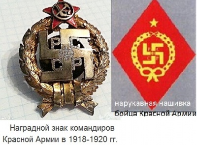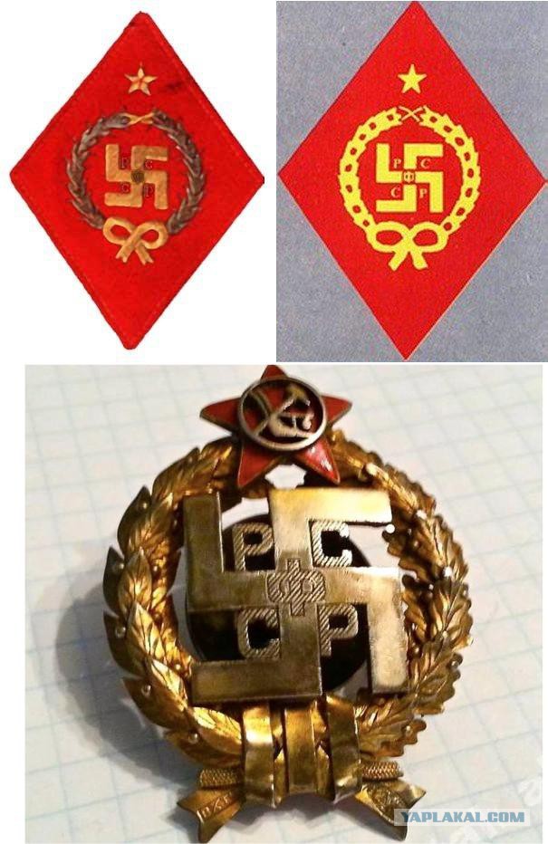 Любопытно, что большевики, использование которыми «фашистского знака» иные современные защитники чистоты идеологических риз партии Троцкого-Свердлова-Ленина-