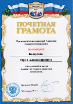 7. Почётная грамота Президиума Международной Академии Психологических наук (20 октября 2017 г.)