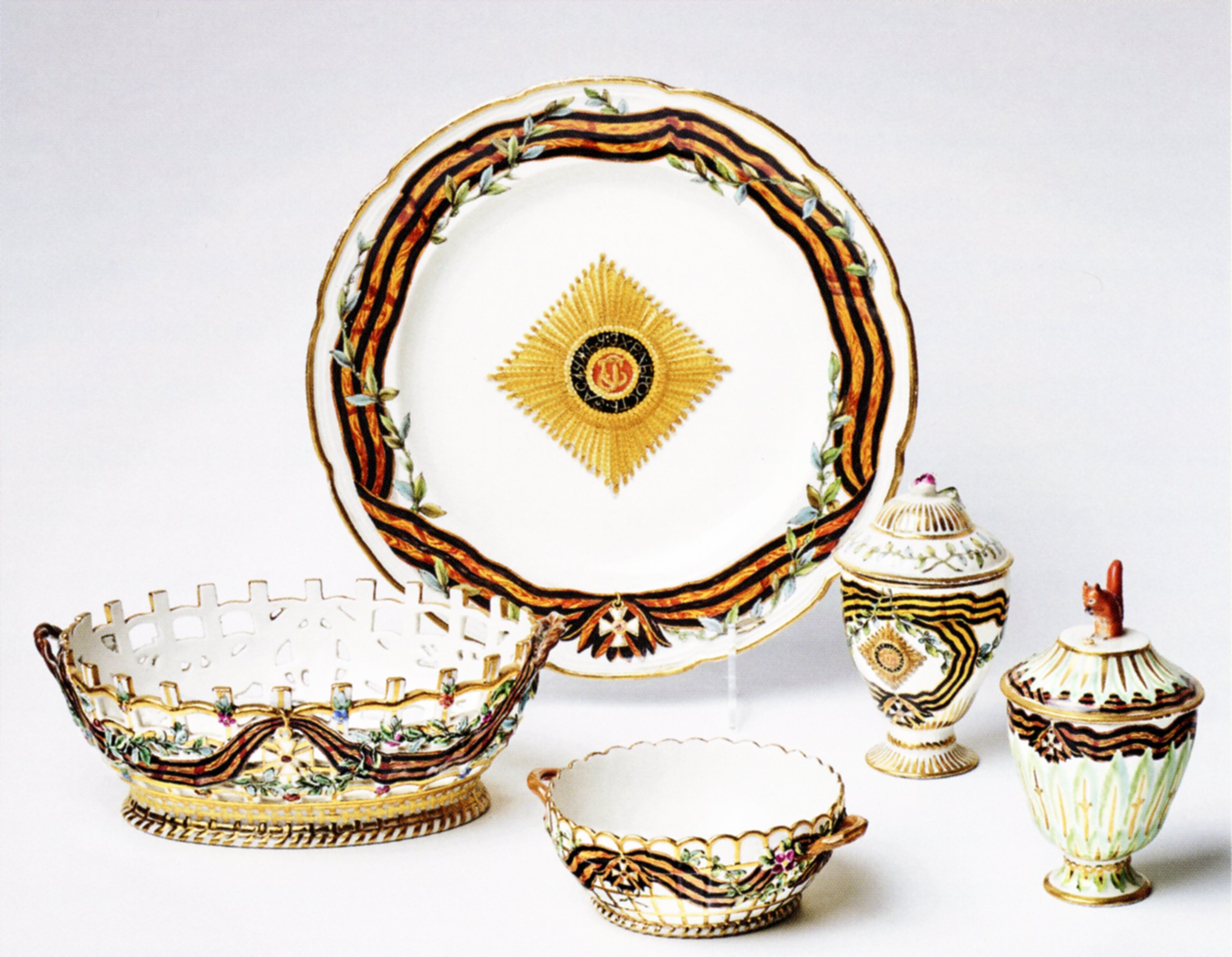 Предметы из сервиза ордена Св. Гергия, выполненные по эскизам Г.И Козлова. Музей-усадьба «Кусково» |