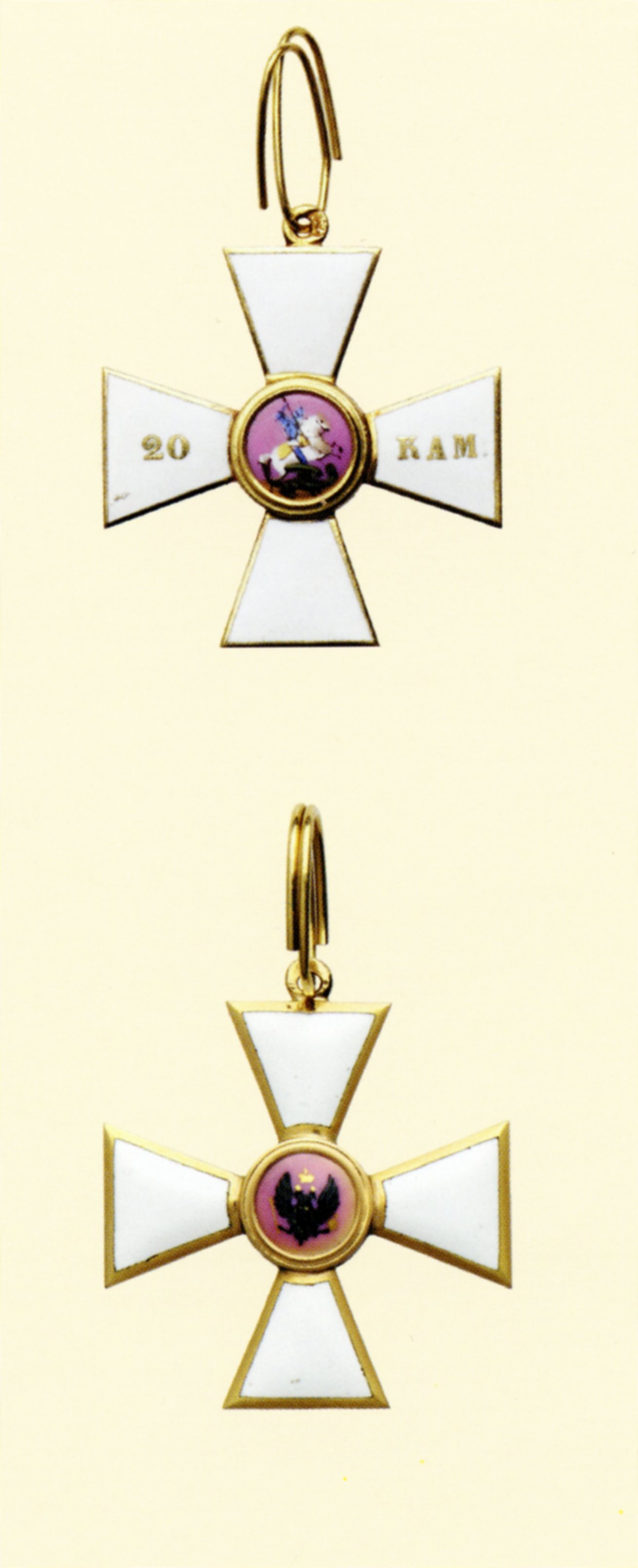 Российские императоры также были награждены орденом Св. Георгия. В связи с тем, что при императоре Павле I награждения орденом в России были приостановлены, сам император не являлся его кавалером. Император Александр I, как уже упоминалось выше, был награжден IV степенью ордена 13 декабря 1805 г. «за храбрость, проявленную в Аустерлицком сражении». Император Николай I имел только IV степень ордена, которой был удостоен х декабря 1838 г. по выслуге лет, в связи с 25-летием состояния в офицерских чинах. Причем император настоял, чтобы вопрос о награждении его орденом предварительно был рассмотрен Георгиевской думой.