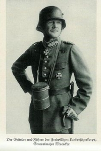 Третьим по счету фрейкором, сформированным в конце ноября 1918 года, был добровольческий полк под командованием полковника 4-го гвардейского полка Вильгельма Рейнгарда (будущего обергруппенфюрера СС), в состав которого вошли и бойцы корпуса Густава Зуппе, так называемые "зупперы". Однако решающую роль в деле организации добровольческих корпусов, призванных сохранить в Германии хоть какое-то подобие закона и порядка, хотя бы до созыва учредительного Национального собрания, было суждено сыграть генерал-майору Людвигу Меркеру (см. фтото выше справа), командиру распущенной после заключения перемирия 214-й пехотной дивизии бывшей кайзеровской армии, разработавшему классическую модель, в соответствии с которой в дальнейшем было сформировано большинство наиболее боеспособных германских добровольческих корпусов. 6 декабря Меркер объявил чинам своей дивизии о своем намерении сформировать фрейкор, базой которого стал вестфальский монастырь Зальцкоттлен и формирование которого началось уже 14 декабря.