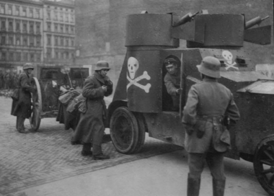 Добровольческий корпус фон Нефвилля, как бы в противовес злейшим врагом фрейкоровцев – спартаковцам-красногвардейцам – именовался "Черной гвардией" ("Шварце Гарде"). Нам, как русским людям, не лишенным интереса представляется факт существования в Баварии фрейкора под названием "Черная сотня" ("Шварце Гундертшафт"), снискавшей себе известность не столько победами над красными на поле боя, сколько "клиринговыми" убийствами "спартаковцев" (совершавшимися в отместку за убийства фрейкоровцев или их сторонников красными боевиками). Иногда в названиях фрейкоров использовалось и архаичное, напоминающее о героических временах германского Средневековья слово "шар", которое можно перевести как "ватага" - например, "Фрейшар (добровольческая ватага) Лаутербахера", или же "Эйзерне Шар" (Железная ватага) капитана Рудольфа Бертольда (которую в русскоязычной военно-исторической литературе обычно именуют не "ватагой", а "Железным отрядом"). И, наконец, в этой III категории фрейкоров были и такие, которые именовали себя по фамилии Верховного Главнокомандующего германской кайзеровской армией в годы мировой войны – например, добровольческий корпус "Гинденбург" или фрейкор "Генерал-фельдмаршал фон Гинденбург"!