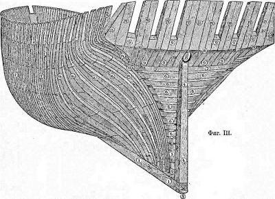 Основание Деревянного судна составляет дубовый 4-гранный брус, называемый килем (фиг. 1 и II).