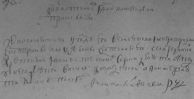 Фото документа о крестьянах села Дубровки за 1722 год.