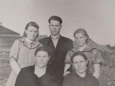 К сожалению, я бабушку свою не знала, она умерла в феврале 1965 года, а я родилась на пять лет позже. Я знала только, что дед ушел на войну, а бабушка осталась с тремя детьми. Пришлось очень тяжело. На деда пришла повестка, что он пропал без вести, и до сих пор о нем ничего неизвестно. Бабушке и детям не платились пособия, так как человек пропал без вести. Она очень горевала. До последнего ждали его с войны, верили, что он вернется. Дети залазили на крышу дома и смотрели, не идет ли кто со стороны Тырнова, так как катер раньше ходил только до Тырнова. Они знали, что катер приходит в 10.00 и к этому времени забирались на трубу и все послевоенное лето ждали его. Бабушка от слез заболела тяжелой болезнью. Она умерла, когда ей было 52 года.