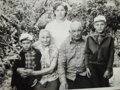 Фото. Мария Павловна, Иван Яковлевич, Евфимия Ивановна, внуки Игорь и Олег, внучки Наталья и Антонина.